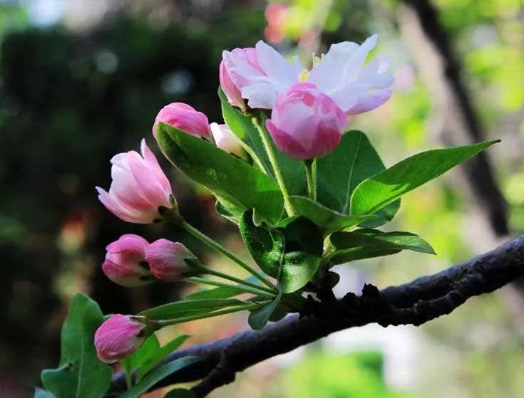 八棱海棠剛生出的花朵呈紅色,慢慢的展開后,由紅色變成粉紅色,再后來會(huì)變成粉白色。西府海棠的花顏色為花粉紅至紫紅色,花姿瀟灑,花香濃郁,沁人心脾。