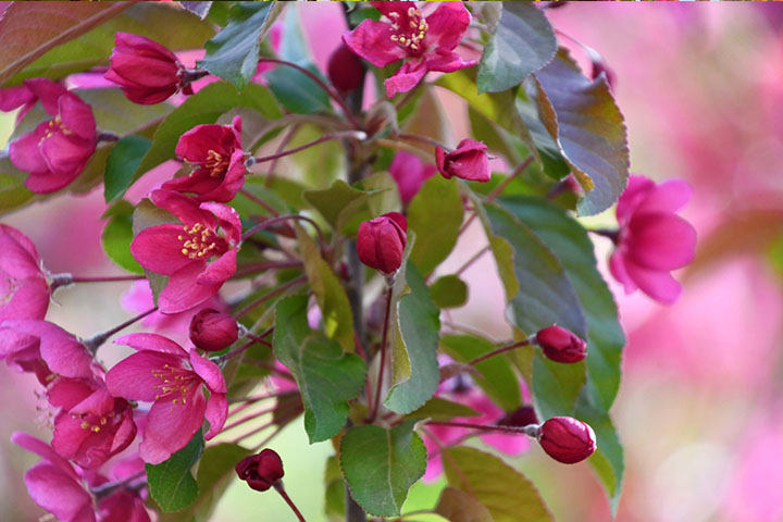 5. 紅葉海棠: 紅葉海棠是一種比較特殊的北美海棠,其葉子樹(shù)干等無(wú)部位均呈現(xiàn)出紅色,花朵為白色,花徑3-4cm,花期和其它海棠一樣,在4月至5月間。